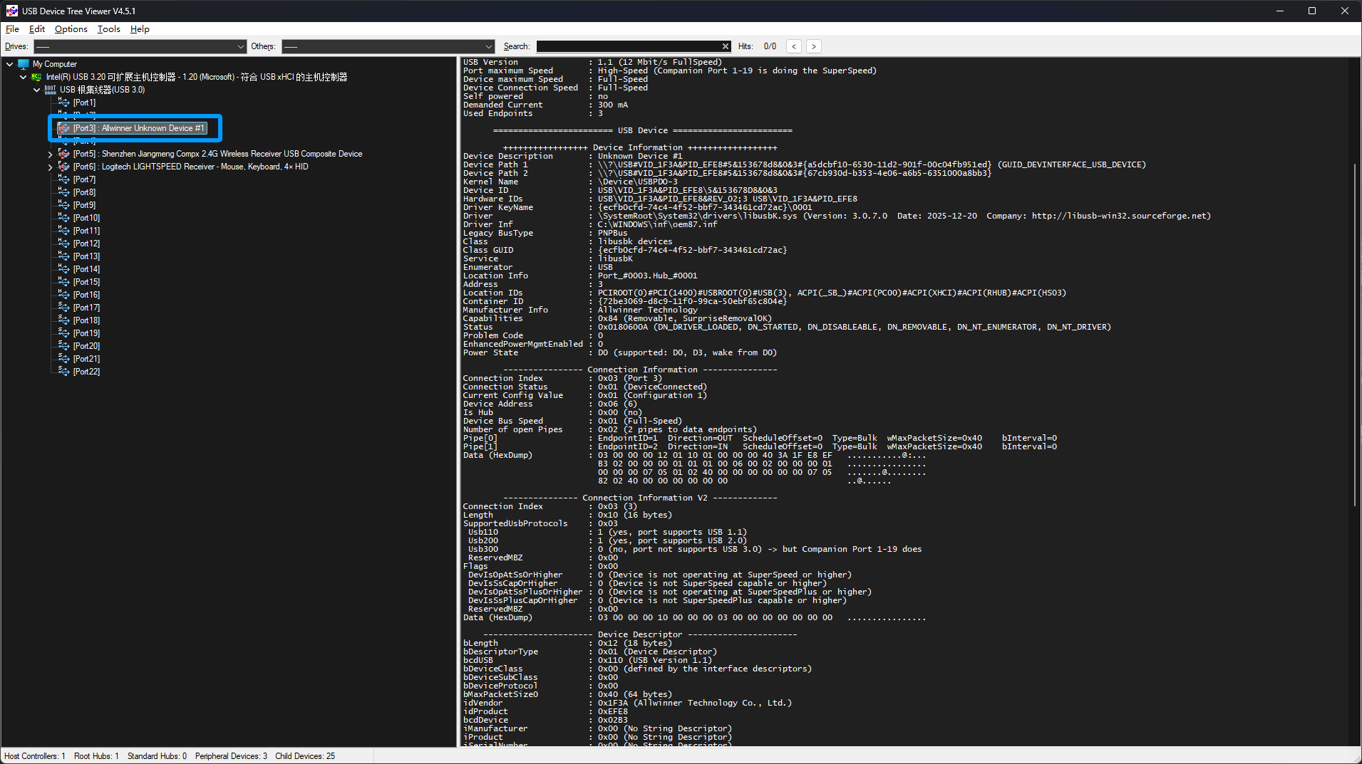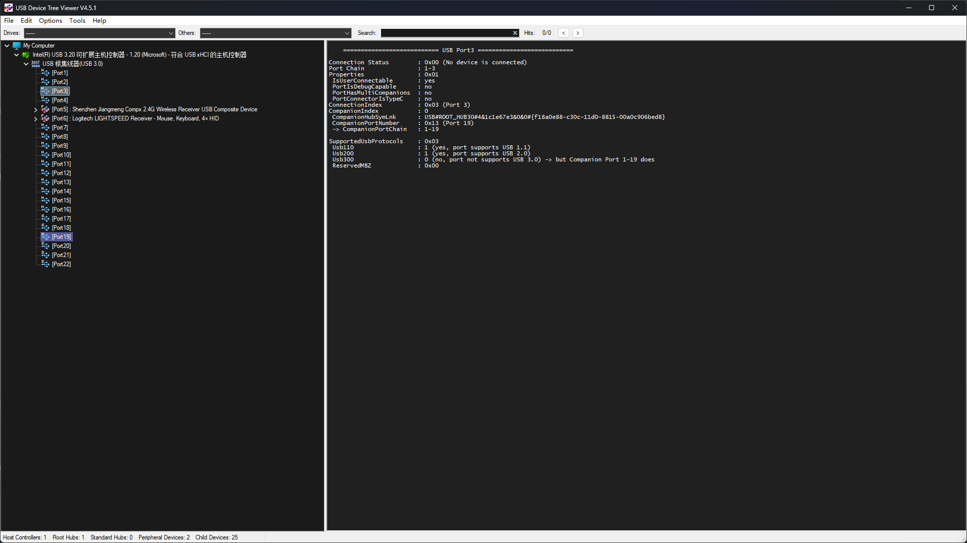 - 解压后,启动USB tree view.exe。你会看到如下界面